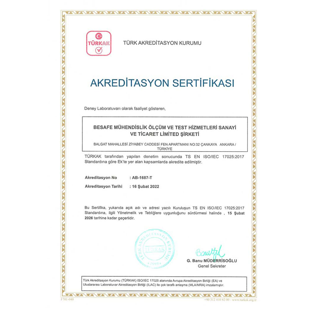 TÜRKAK AKREDİTASYON SERTİFİKASI